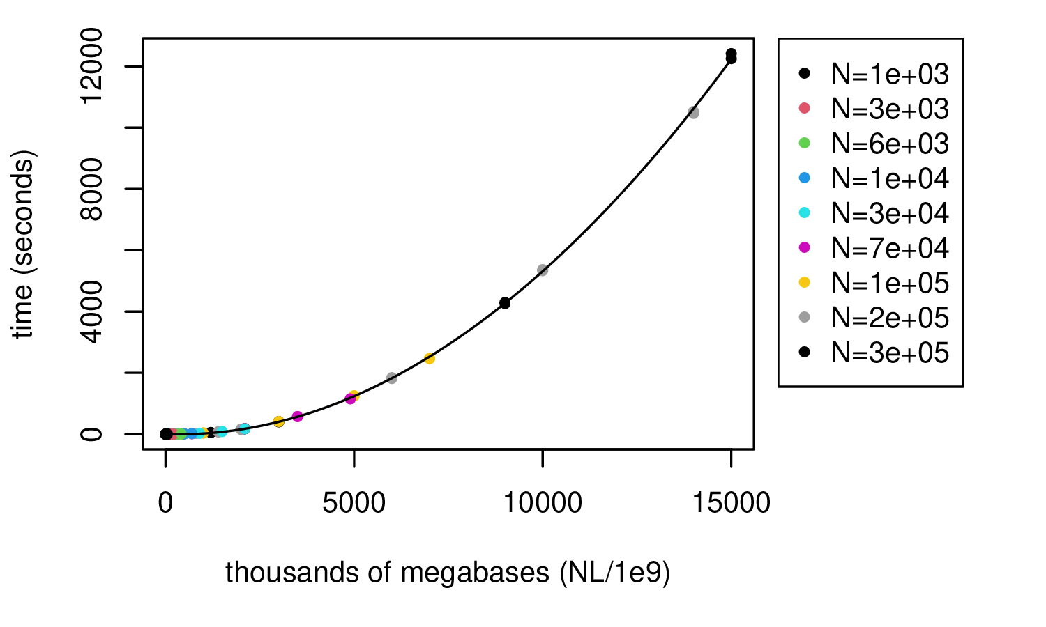 takeaway: 3x slower than genomes! Scales with neighborhood size (\(\sigma^2\)).