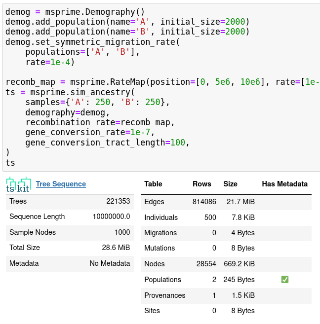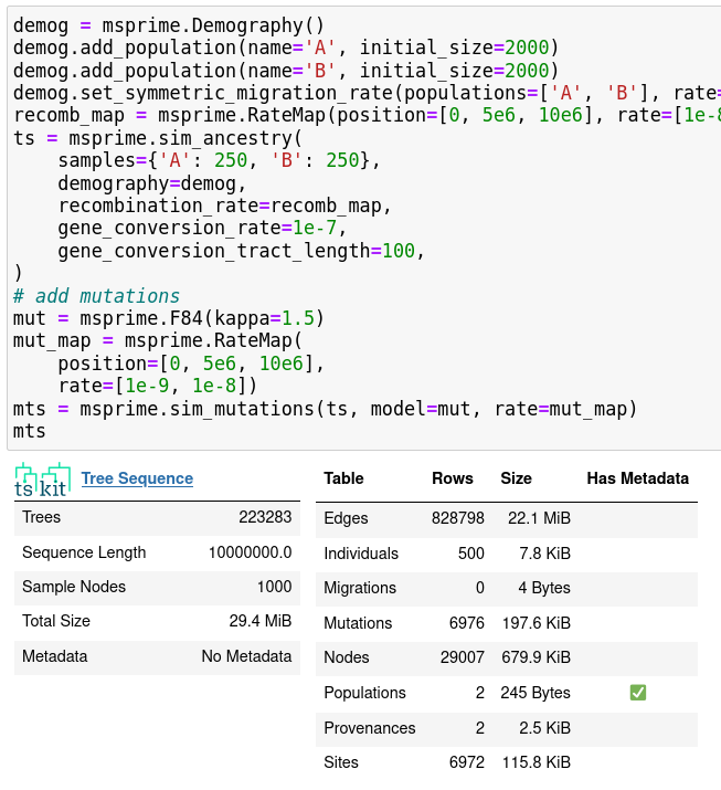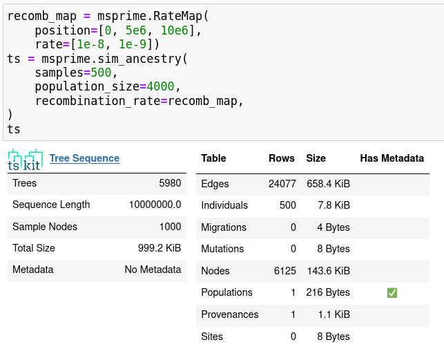 mts = msprime.sim_mutations(ts, rate=1e-7)