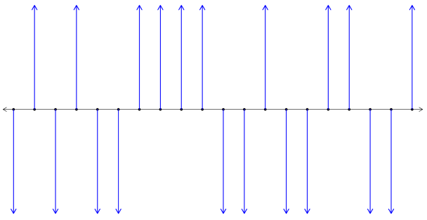 Recall a realization of the basic noise for Gaussian processes looked like that in Figure 1. Now, arrows are either muted or (rarely) point up. See Figure 2.